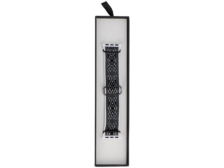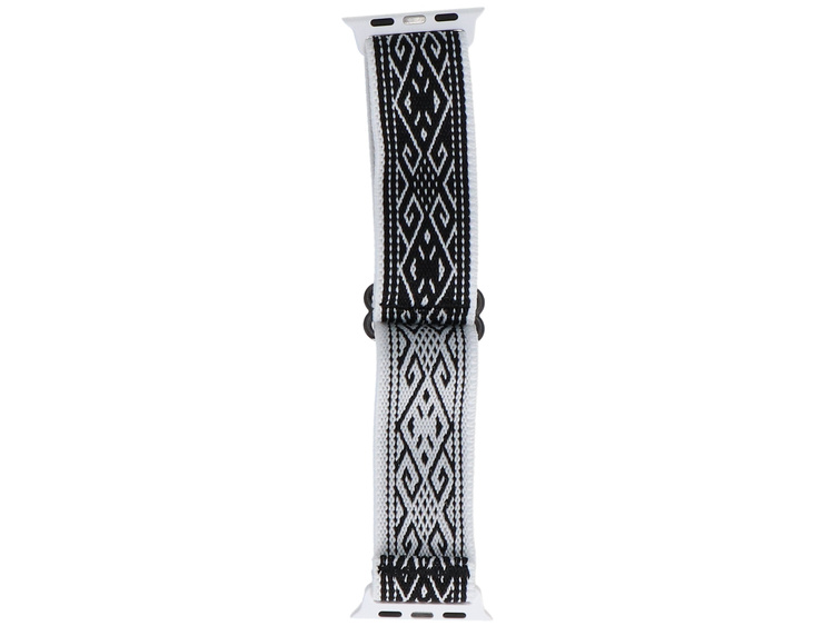 Correa de nylon GlacierX, dedicada a Apple Watch 38/40/41mm, en un estilo oriental y estampado. Blanco y negro con regulador deslizante.
