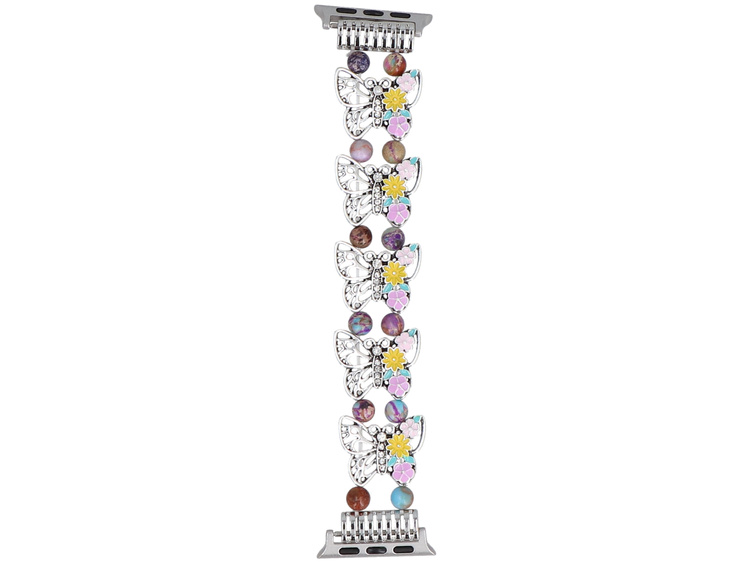 Nueva pulsera para smartwatch GlacierX Beaded Butterfly Motif Stretch Bracelet Silver Lea para Apple Watch 38/40/41mm Plateada-multicolor