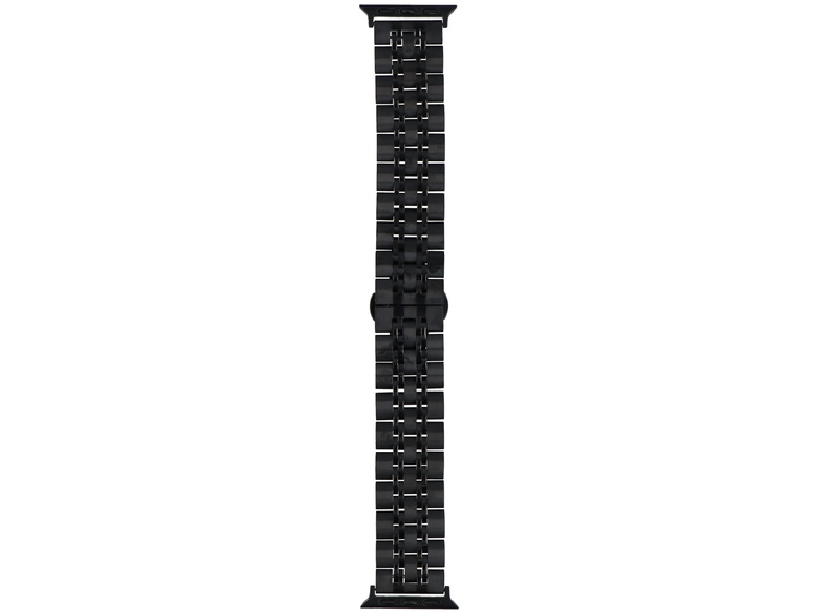 Pulsera GlacierX dedicada para Apple Watch de 38/40/41 mm, cerrada con un cierre mariposa. Hecha de eslabones de diferentes anchos, color negro.