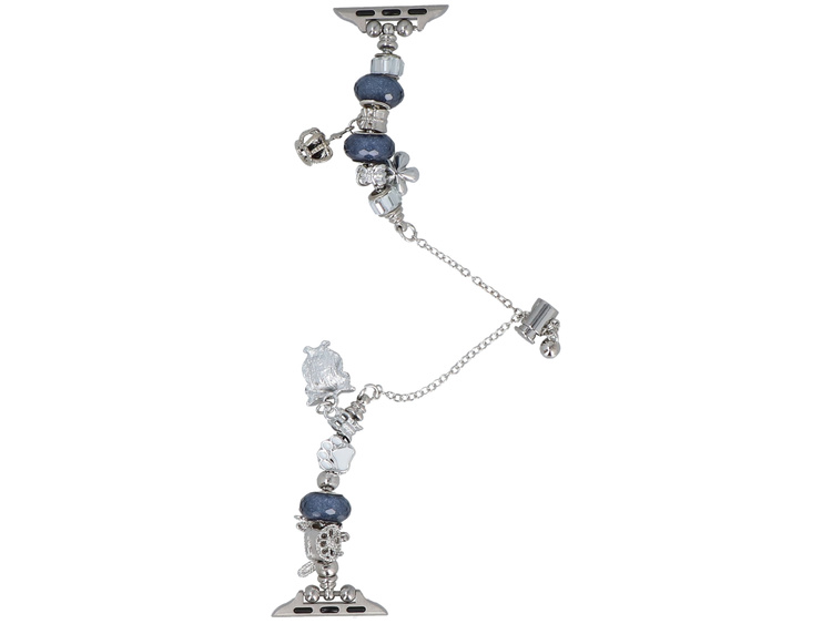 Nueva pulsera para smartwatch GlacierX Slider Clasp Beaded Charm Bracelet Nightfall Silver para Apple Watch 38/40/41mm Plata y azul marino.