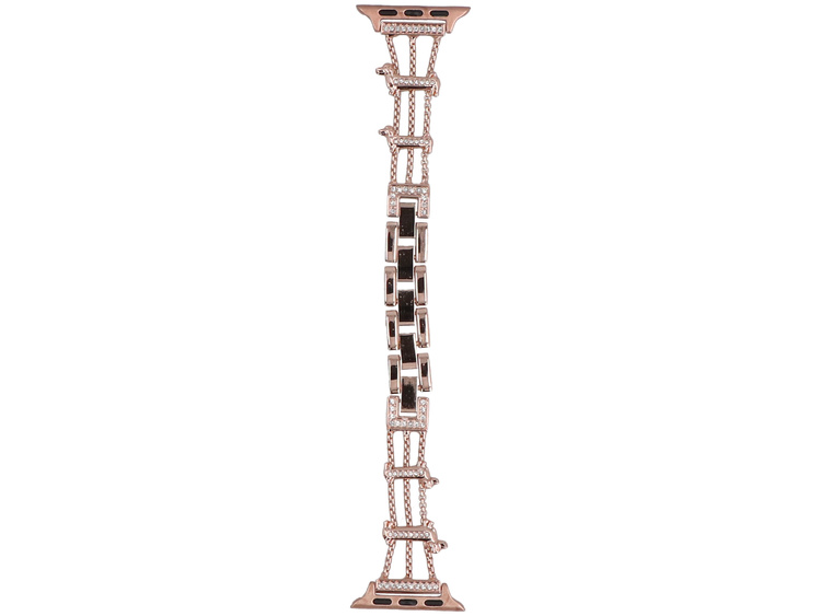 Pulsera de cadena GlacierX dedicada a Apple Watch de 38/40/41 mm. Color oro rosa, sutilmente adornada con circonitas. Longitud ajustable mediante eslabones desmontables.