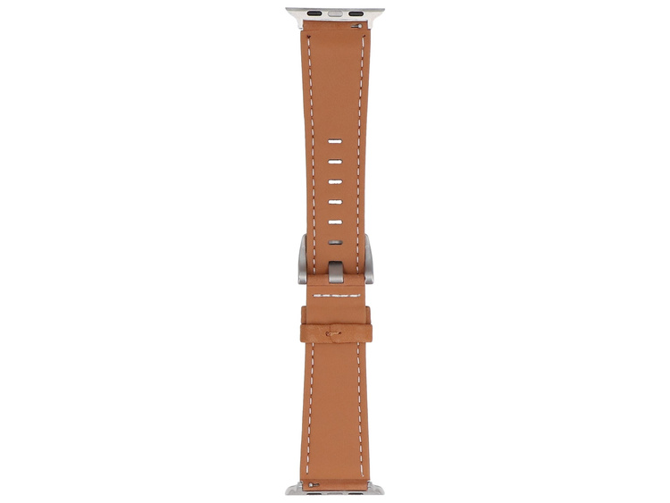 Correa GlacierX de cuero natural con una ligera estructura de terciopelo, dedicada a Apple Watch 42/44/45/49mm. Color marrón con costuras claras. Cierre con hebilla clásica.