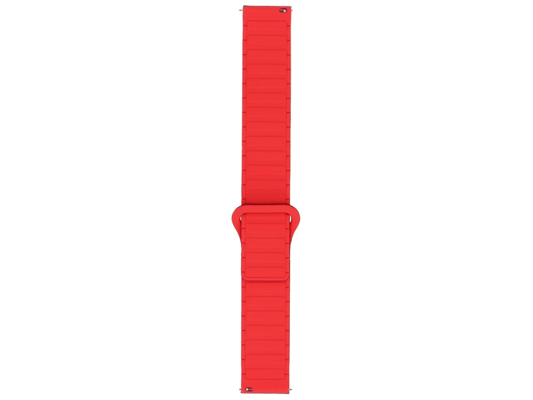 Correa de silicona magnética para smartwatch GlacierX. Ultraligera y fácil de poner gracias a su potente imán. Producto nuevo, empaquetado en su embalaje original. Color negro con interior rojo, ancho de 22 mm.