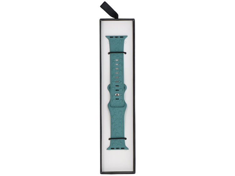 Correa de silicona GlacierX, dedicada para Apple Watch de 38/40/41 mm, en color verde con textura decorativa. Cierre deslizante con lengüeta.