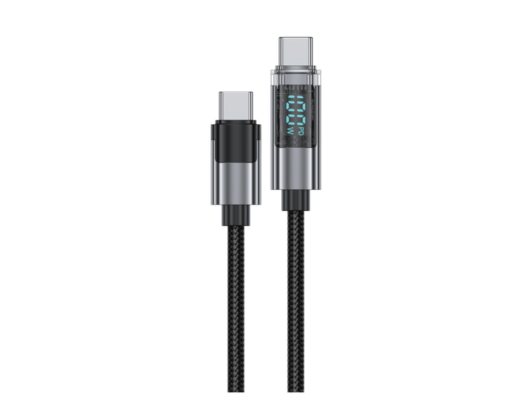 Encore Energy nouveau câble avec affichage USB-C x2 5A câble QC PD 100W pour la charge et le transfert de données 100 cm tressé noir EE154-CC