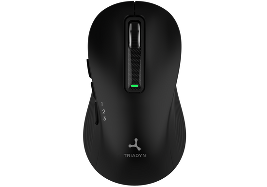 La souris Triadyn EUROPA permet de coupler simultanément jusqu'à trois appareils – deux via Bluetooth et un par le récepteur USB 2.4 GHz. Le passage entre eux se fait instantanément, vous permettant de travailler librement sur un ordinateur portable, une tablette ou un ordinateur de bureau sans avoir à coupler à nouveau. L'appareil est équipé d'un port USB-C moderne, qui garantit une charge rapide, sécurisée et pratique de la batterie. De plus, la souris fonctionne en mode Plug & Play, ce qui signifie qu'aucun pilote n'est nécessaire – il suffit de connecter le récepteur ou de se connecter via Bluetooth pour commencer à travailler immédiatement.