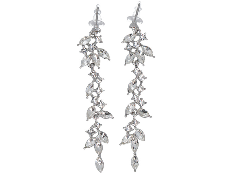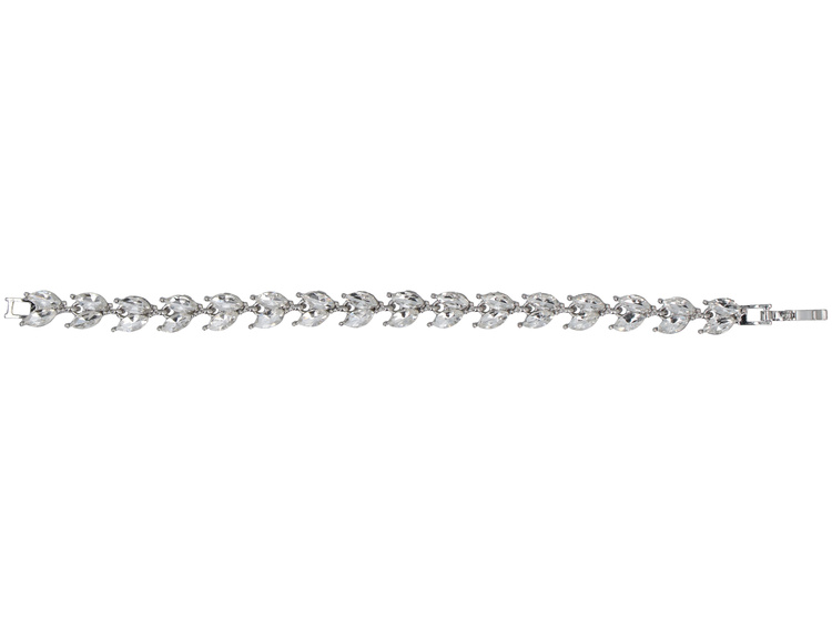 Ensemble de bijoux en couleur argentée. Collier, bracelet et boucles d'oreilles à puce, ornés de scintillantes zircones disposées en motif inspiré de la nature. Ensemble riche pour des occasions spéciales, dans une version élégante et romantique.