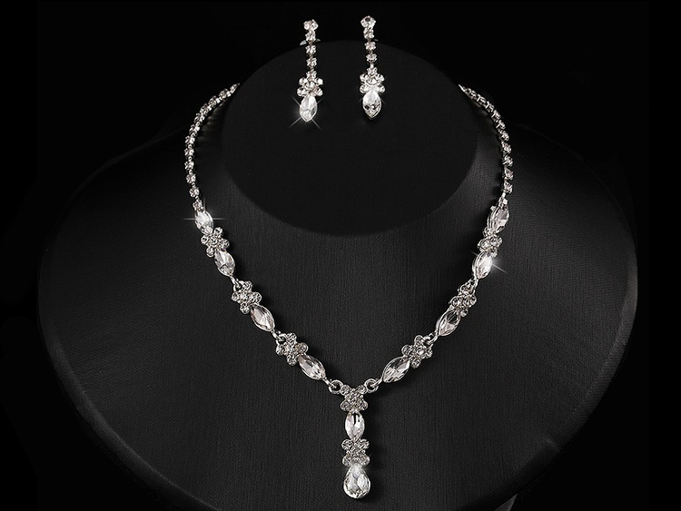 Le rêve est un ensemble de bijoux qui émerveille par son éclat subtil. Le collier enveloppe délicatement le cou avec des cristaux scintillants. Les boucles d'oreilles à tige complètent parfaitement le tout, ajoutant un charme exceptionnel à la tenue.