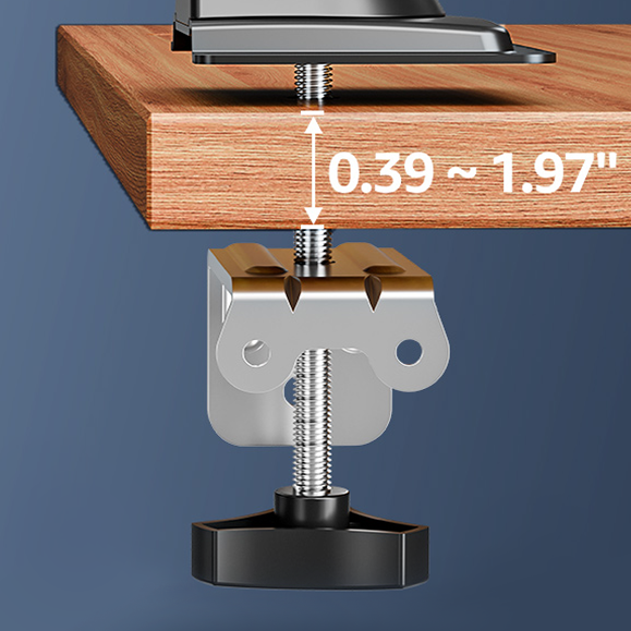 Possibilité de montage sur le bord du bureau ou à travers un trou dans le plateau