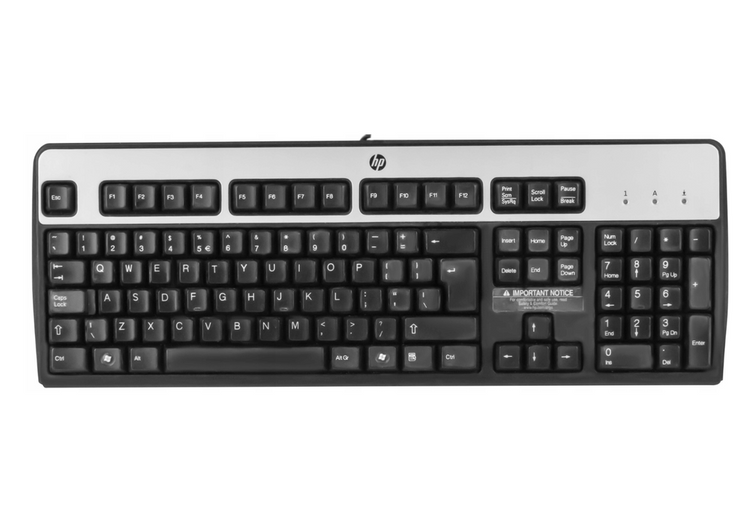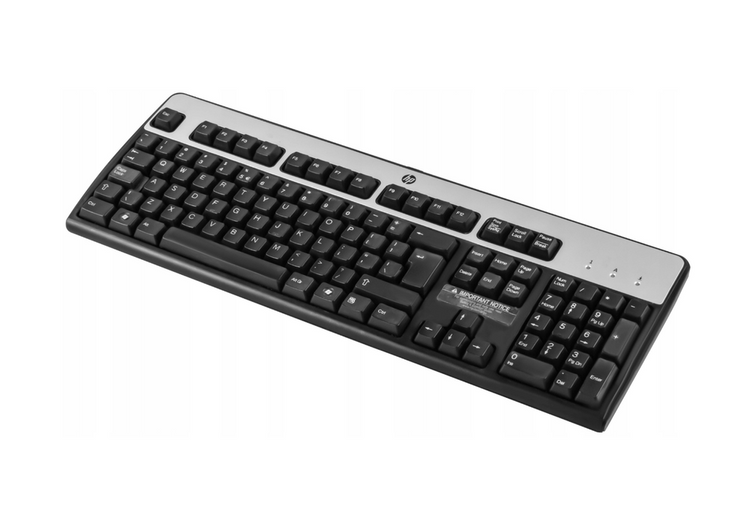 Clavier d'occasion, original de la marque HP. Clavier filaire - connexion USB. Clavier avec disposition des touches QWERTY (après application d'autocollants de francisation). Photos d'illustration.