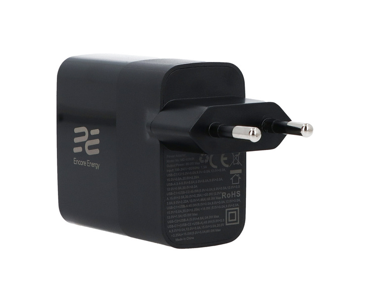 Nouveau chargeur secteur Encore Energy GaN QC 4+ PD 3.0 USB-A USB-C x2 65W MD-6583R avec écran + Câble USB Encore Energy 2m