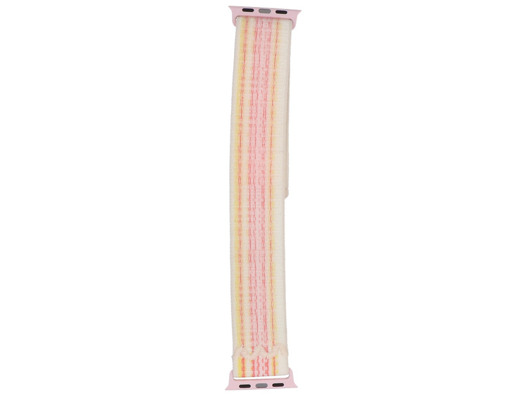 Sangle en nylon GlacierX, dédiée à l'Apple Watch 38/40/41mm. Se ferme par velcro, permettant un ajustement précis au tour de poignet. Produit neuf, couleur jaune-rose Sunset Blossom.
