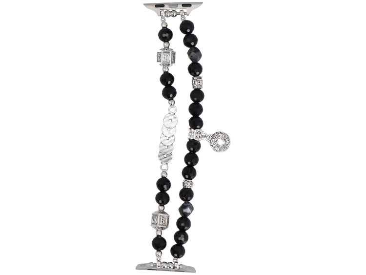 Nouveau bracelet pour smartwatch GlacierX Double Strand Coin Charm Bracelet Onyx Shine pour Apple Watch 38/40/41mm Argent-noir