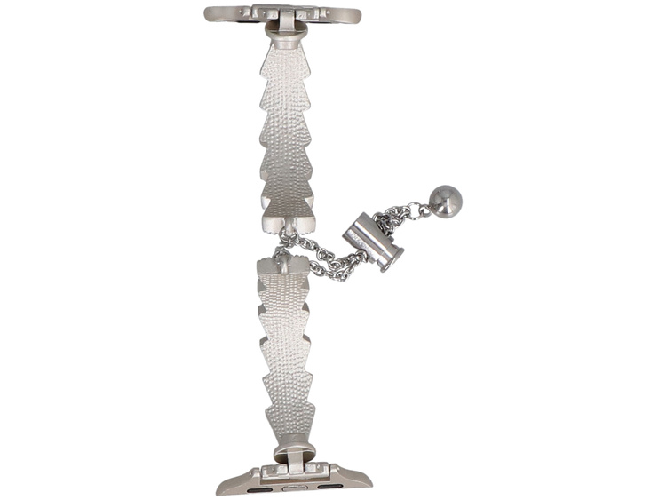 Bracelet GlacierX dédiée à l'Apple Watch 38/40/41mm, de style manchette. Fermoir à glissière, réalisée en maillons avec un remplissage en type nacre, couleur argent-blanc.