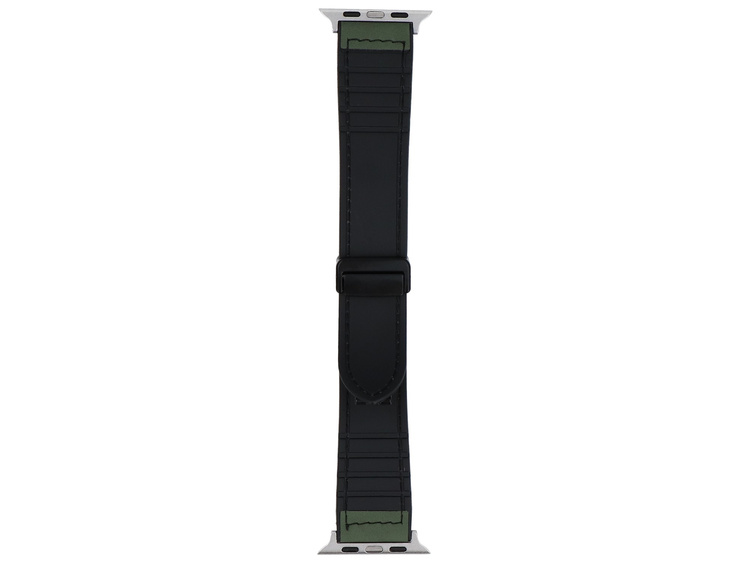 Ceinture en cuir GlacierX dédiée à l'Apple Watch 42/44/45/49mm. Fermée par une boucle magnétique et pliable, elle forme une boucle continue avec la montre, la protégeant contre un glissement accidentel du poignet. Produit neuf, couleur verte Stone Green.