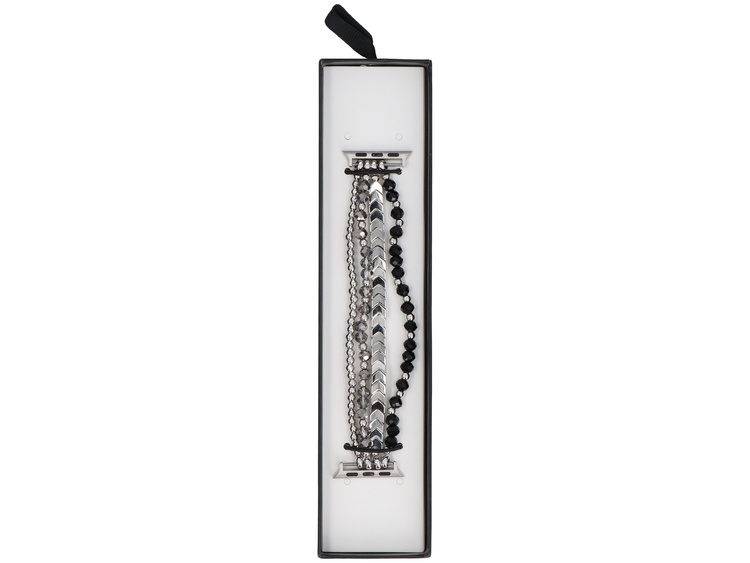 Nouvelle bracelet pour smartwatch GlacierX Multi Strand Beaded Bracelet Onyx Shine pour Apple Watch 38/40/41mm Argent-noir
