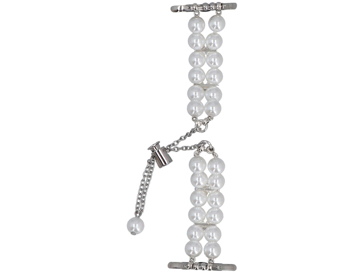 Bracelet GlacierX dédiée à l'Apple Watch 38/40/41mm, avec des perles décoratives en nacre. Réglable avec une fermeture à glissière (stopper), couleur argentée et blanche.