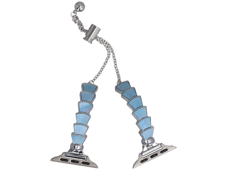 Bracelet GlacierX dédiée à l'Apple Watch 38/40/41mm, de style bracelet. Fermoir à glissière, fabriquée en maillons avec un remplissage en nacre, couleur argent-bleu.