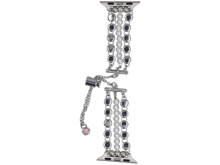 Nouvelle bracelet pour smartwatch GlacierX Slider Clasp Triple Chain Pearl Bracelet Crystal Pink pour Apple Watch 38/40/41mm Argenté-rose