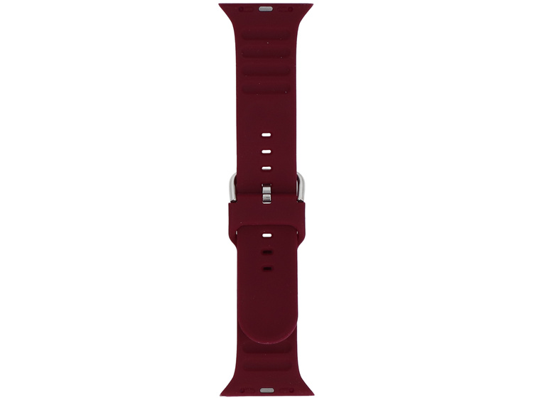 Bracelet en silicone GlacierX dédié à l'Apple Watch 42/44/45/49mm avec une boucle classique en couleur argentée. Bordeaux avec une texture rayée prononcée.