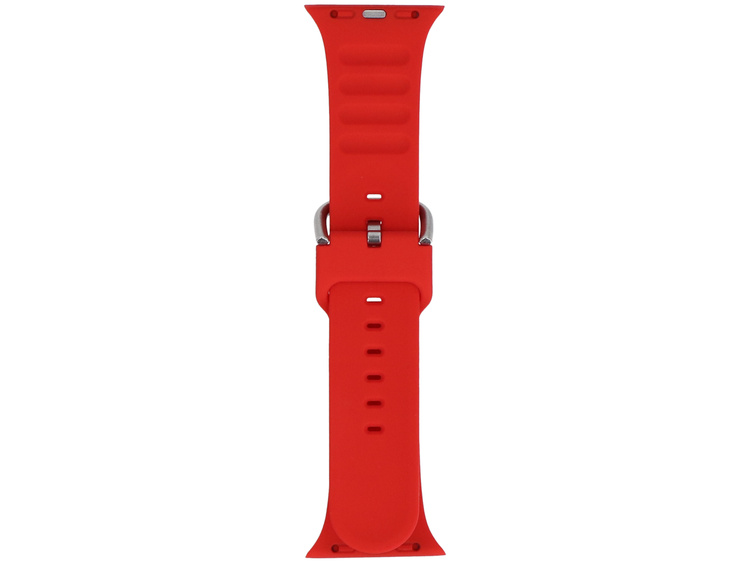 Bracelet en silicone GlacierX dédié à l'Apple Watch 38/40/41mm avec une boucle classique en couleur argentée. Rouge avec une texture rayée marquée.