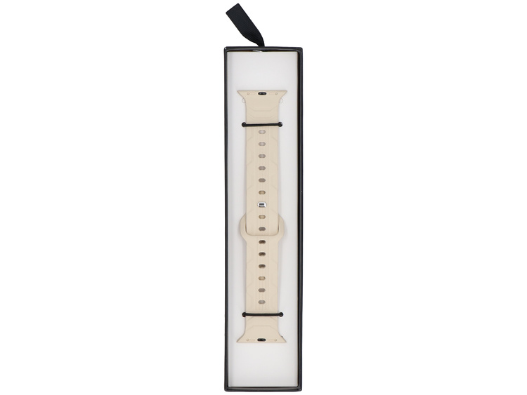 Bracelet en silicone GlacierX dédié à l'Apple Watch 38/40/41mm avec fermoir à glissière et épingle. Crème avec texture décorative.