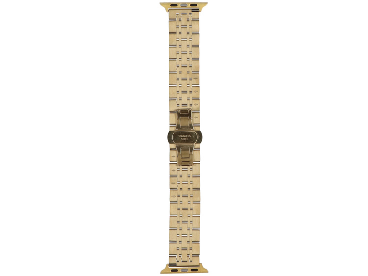 Bracelet GlacierX dédiée à l'Apple Watch 42/44/45/49mm, fermée par une boucle papillon. Fabriquée avec des maillons de différentes largeurs, couleur dorée.