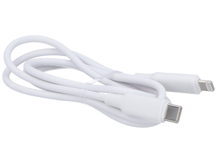 Cavo USB Encore Energy che supporta lo standard PD. Cavo flessibile per la ricarica e il trasferimento dati con due connettori: USB tipo C e Lightning. Lunghezza 100 cm, colore bianco. Designazione MD-27CL1W.