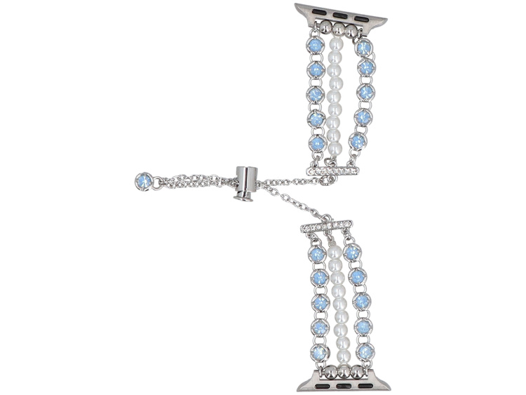 Nuovo bracciale per smartwatch GlacierX Slider Clasp Triple Chain Pearl Bracelet Crystal Blue per Apple Watch 38/40/41mm Argento-blu.