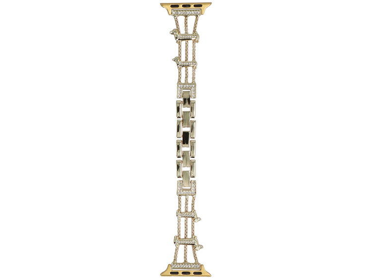 Bracciale a catena GlacierX dedicato all'Apple Watch 38/40/41mm. Colore oro, decorato delicatamente con zirconi. Lunghezza regolabile tramite maglie apribili.