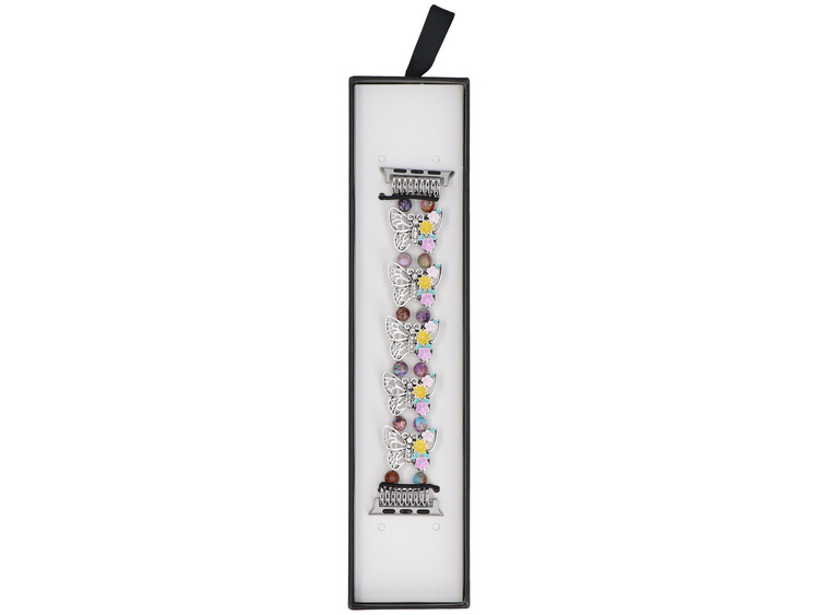 Nuovo braccialetto per smartwatch GlacierX Beaded Butterfly Motif Stretch Bracelet Silver Lea per Apple Watch 38/40/41mm Argento-multicolore