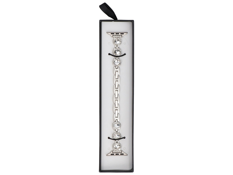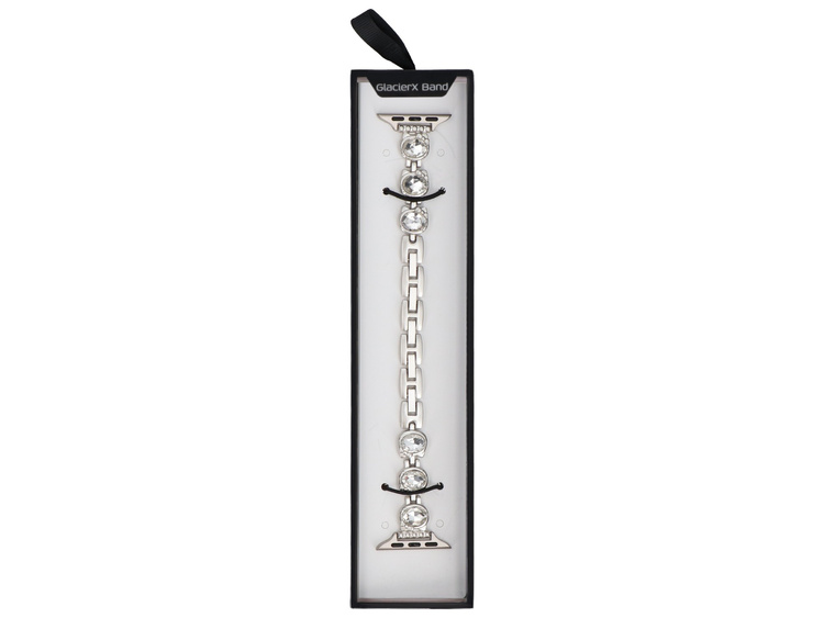 Braccialetto a catena GlacierX dedicato per Apple Watch 38/40/41mm. Colore Cosmic Glow, decorato con zirconi. Lunghezza regolabile tramite maglie apribili. Prodotto nuovo, confezionato nella confezione originale.