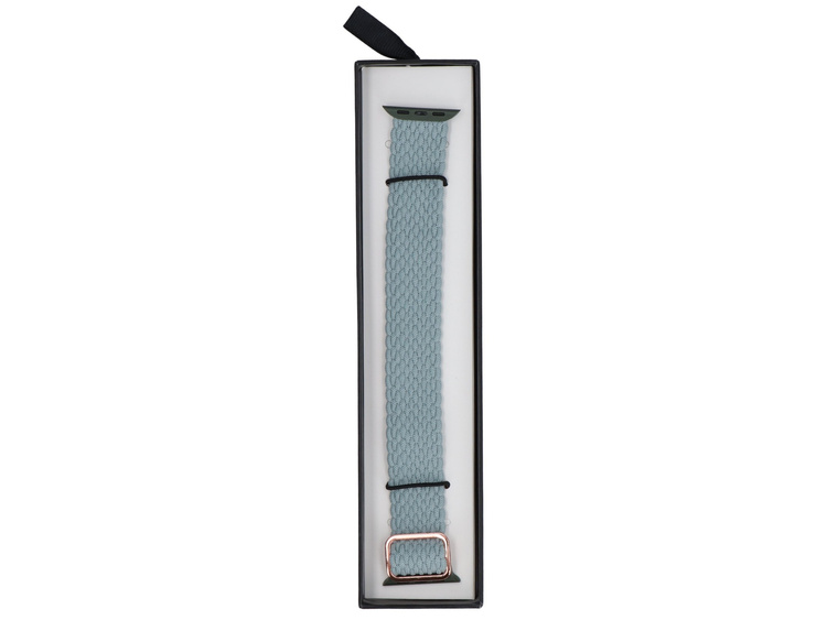 Cintura intrecciata GlacierX, dedicata per Apple Watch 38/40/41mm. Alta elasticità del materiale e il regolatore applicato permettono una precisa adattabilità della cintura al polso. Prodotto nuovo, in una tonalità grigio-verde di blu - Sage Blue.