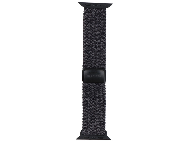 Cintura intrecciata GlacierX, dedicata per Apple Watch 42/44/45/49mm. Grazie alla chiusura magnetica e all'alta elasticità della cintura, è possibile adattarla con precisione al polso. Prodotto nuovo, colore nero grafite.