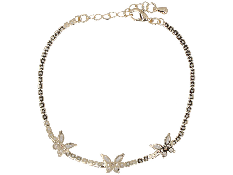 Казкова – браслет, складений з ряду дрібних цирконій, які утворюють тонку лінію сяйва в золотій оправі. Форми, що нагадують метеликів у середній частині, надають йому романтичного характеру.