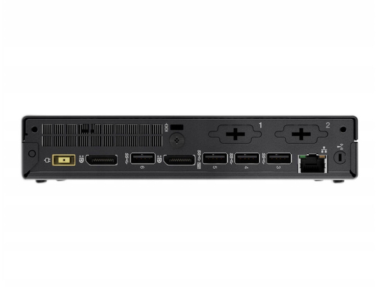 Konfigurację M625q Tiny można precyzyjnie dostosować do potrzeb firmy. Otwory na opcjonalne gniazda można obsadzić portem szeregowym, portem USB-C (obsługującym monitory VGA i transmisję danych), portem VGA lub drugim portem szeregowym. M625q ma też dwa gniazda rozszerzeń, których można użyć do łączności Wi-Fi lub powiększenia pamięci masowej.