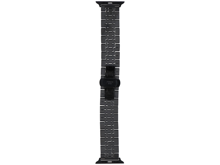 Браслет GlacierX, призначений для Apple Watch 42/44/45/49мм, застібається на метеликову застібку. Виготовлений з ланок різної ширини, колір чорний,