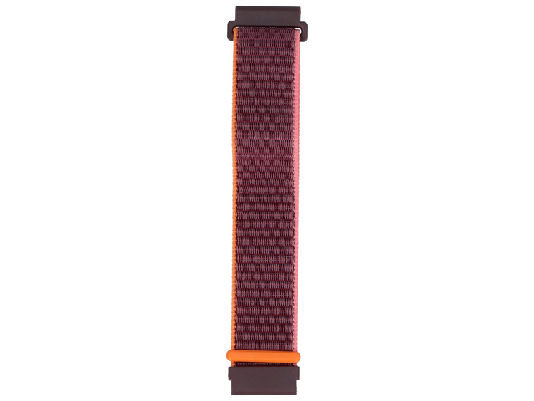 Нейлоновий ремінець для смарт-годинника GlacierX у кольорі сливи / фіолетовому, з контрастними краями у кольорах рожевому та помаранчевому. Продукт новий, упакований в оригінальну упаковку. Ширина 22 мм, застібається на липучку.