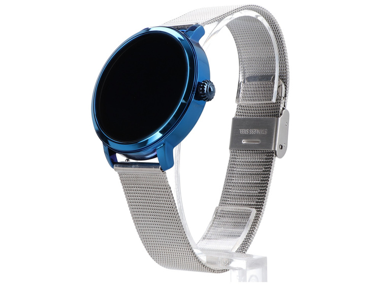 Смартгодинник GlacierX Freya Blue поєднує елегантний дизайн з найважливішими функціями спортивного годинника. Корпус годинника в інтенсивному синьому кольорі з легким блиском, на сріблястому браслеті-мереживі (міланському). Код продукту GX-FN20.