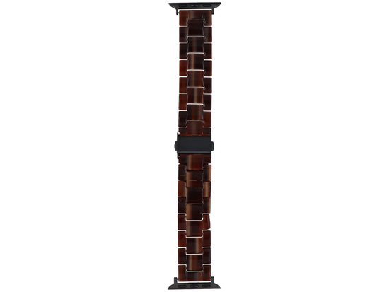 Браслет GlacierX, призначений для Apple Watch 38/40/41 мм, застібається на метеликову застібку. Виготовлений з пластикових ланок, темно-коричневого кольору з більш світлими акцентами.
