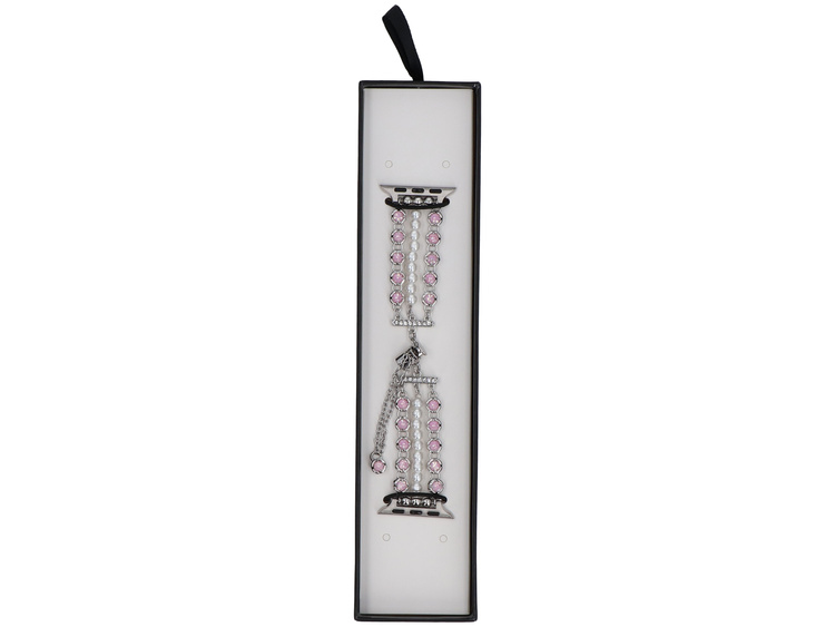 Нова браслет для смарт-годинника GlacierX Slider Clasp Triple Chain Pearl Bracelet Crystal Pink для Apple Watch 38/40/41mm Срібно-рожевий